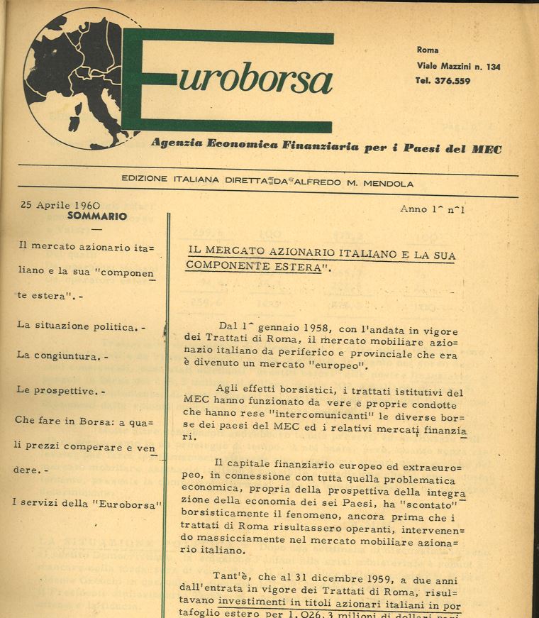 Sono passati 60 anni da quando Euroborsa fece la sua prima apparizione nel panorama dell'informazione italiana. Un’epoca in cui Euroborsa si muoveva tra il rumore del ticchettio delle telescriventi, l'odore dell'inchiostro e il lavoro certosino - che toccava sempre all'ultimo arrivato in redazione - per imbustare i numeri della rivista appena stampati e mandarli alla distribuzione.